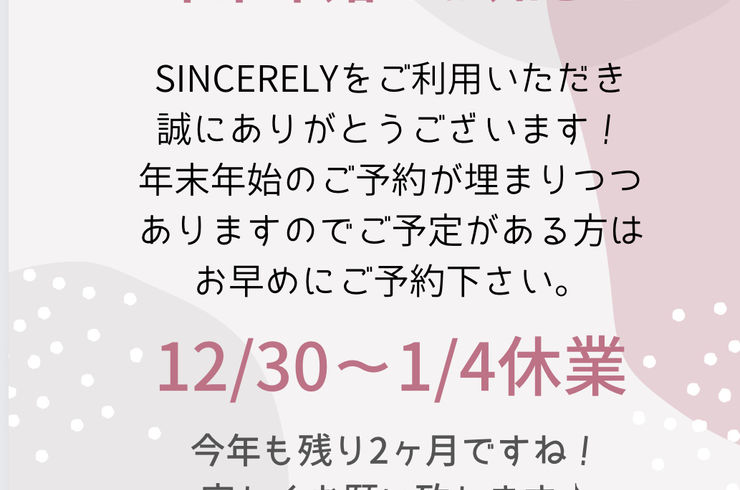 年末年始休業のお知らせ